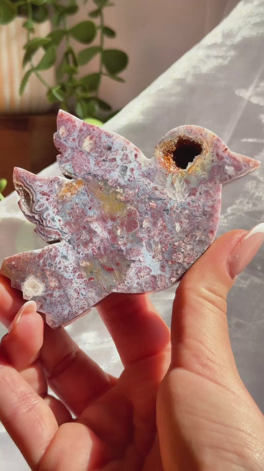 Indonesian Purple Plume Agate carvings with holder included