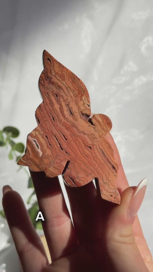 Indonesian Pink Crazy Lace Agate fairies and butterflies carvings