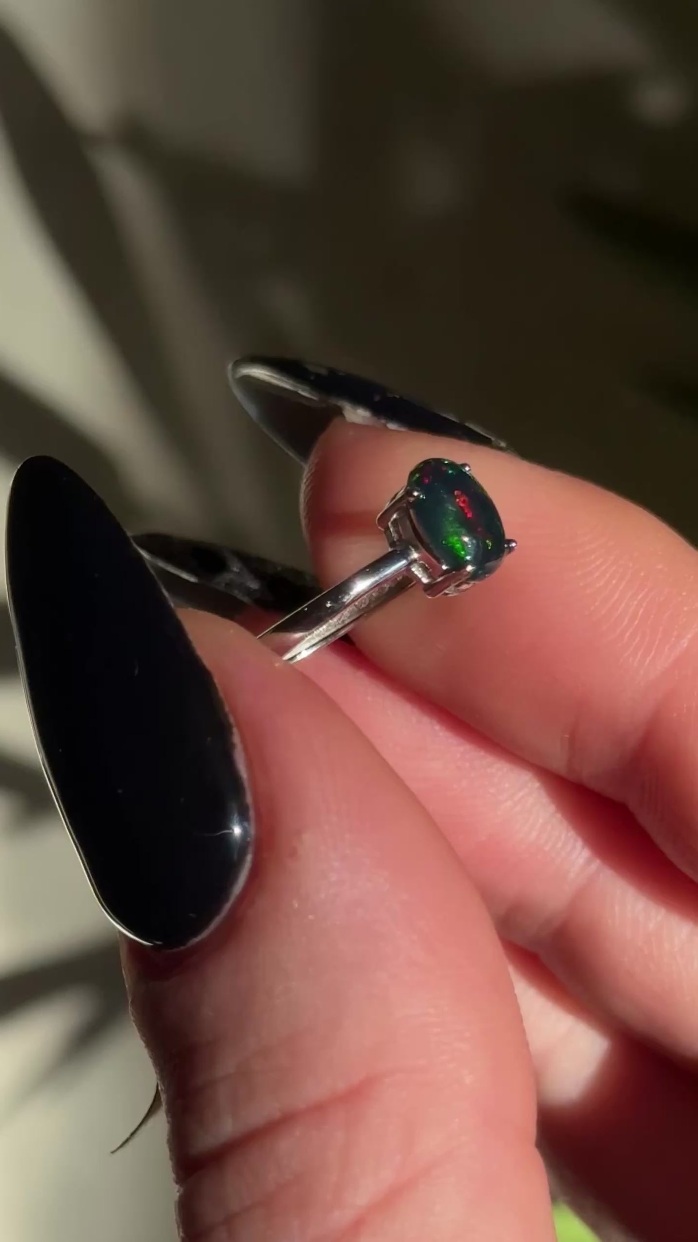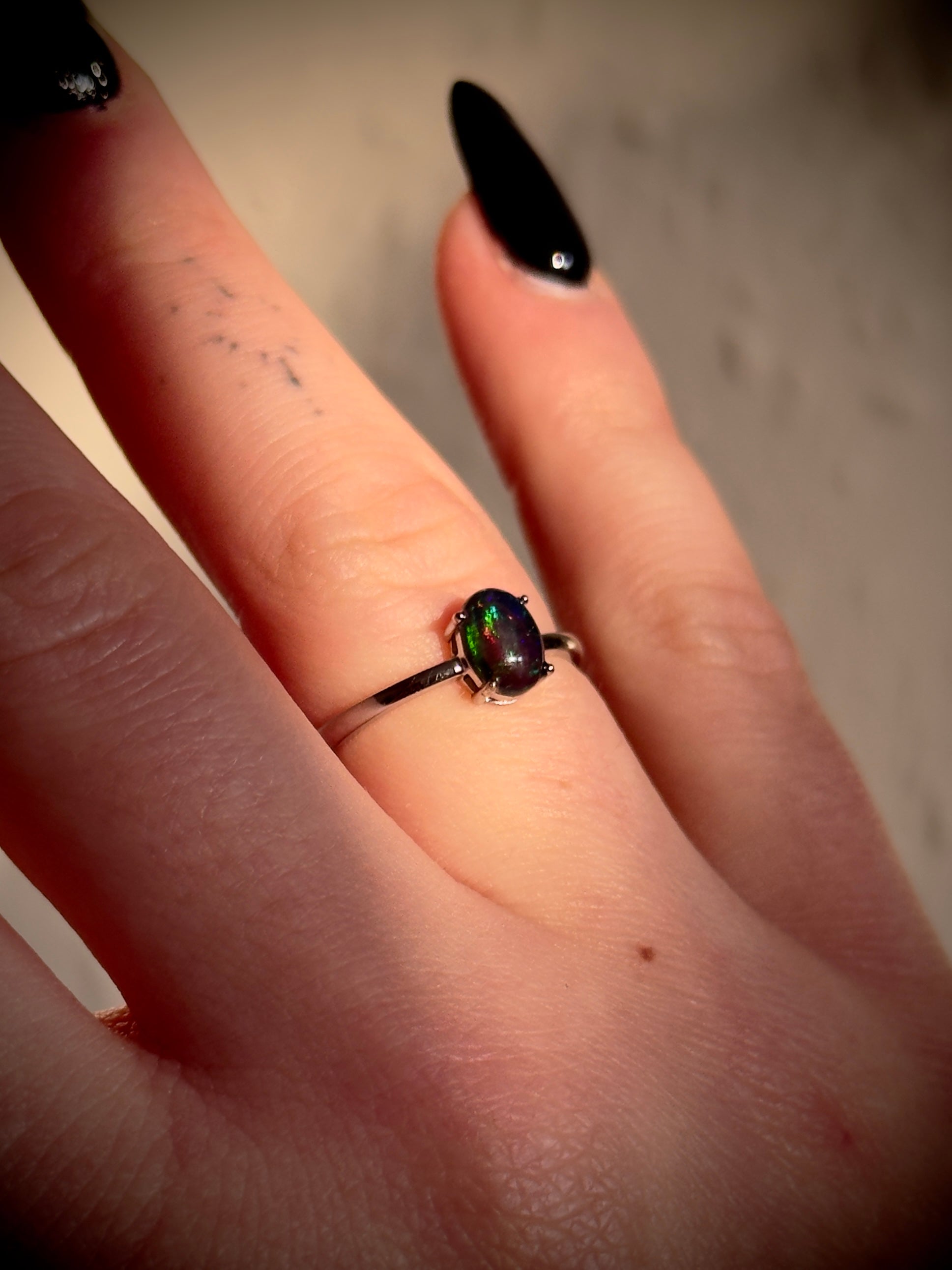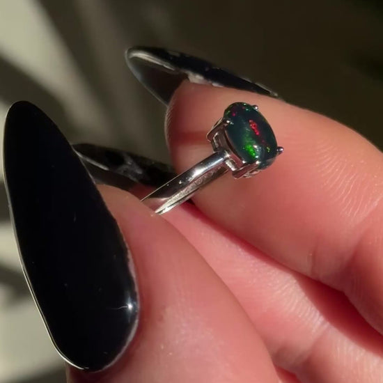 Black Opal adjustable ring in silver 925